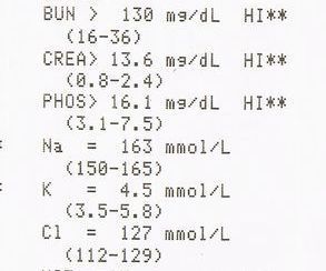 動物病院では診断のために血液検査を実施して尿素窒素(BUN)やクレアチニンなどを調べますが、腎機能が75%以上障害されないと異常値がでないのです。